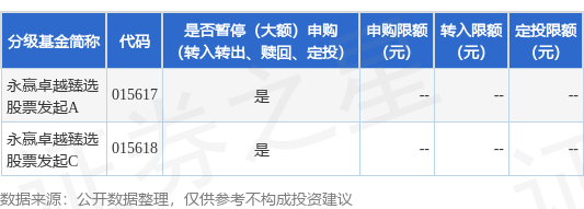 本站消息策略吧,6月11日永赢基金管理有限公司发布《永赢卓越臻选股票型发起式证券投资基金暂停申购、转换转入、定期定额投资业务的公告》。公告中提示,为保护基金份额持有人利益,自2025年6月11日起永赢卓越臻选股票型发起式证券投资基金暂停申购、转换转入、定期定额投资业务,下属分级基金调整明细如下: