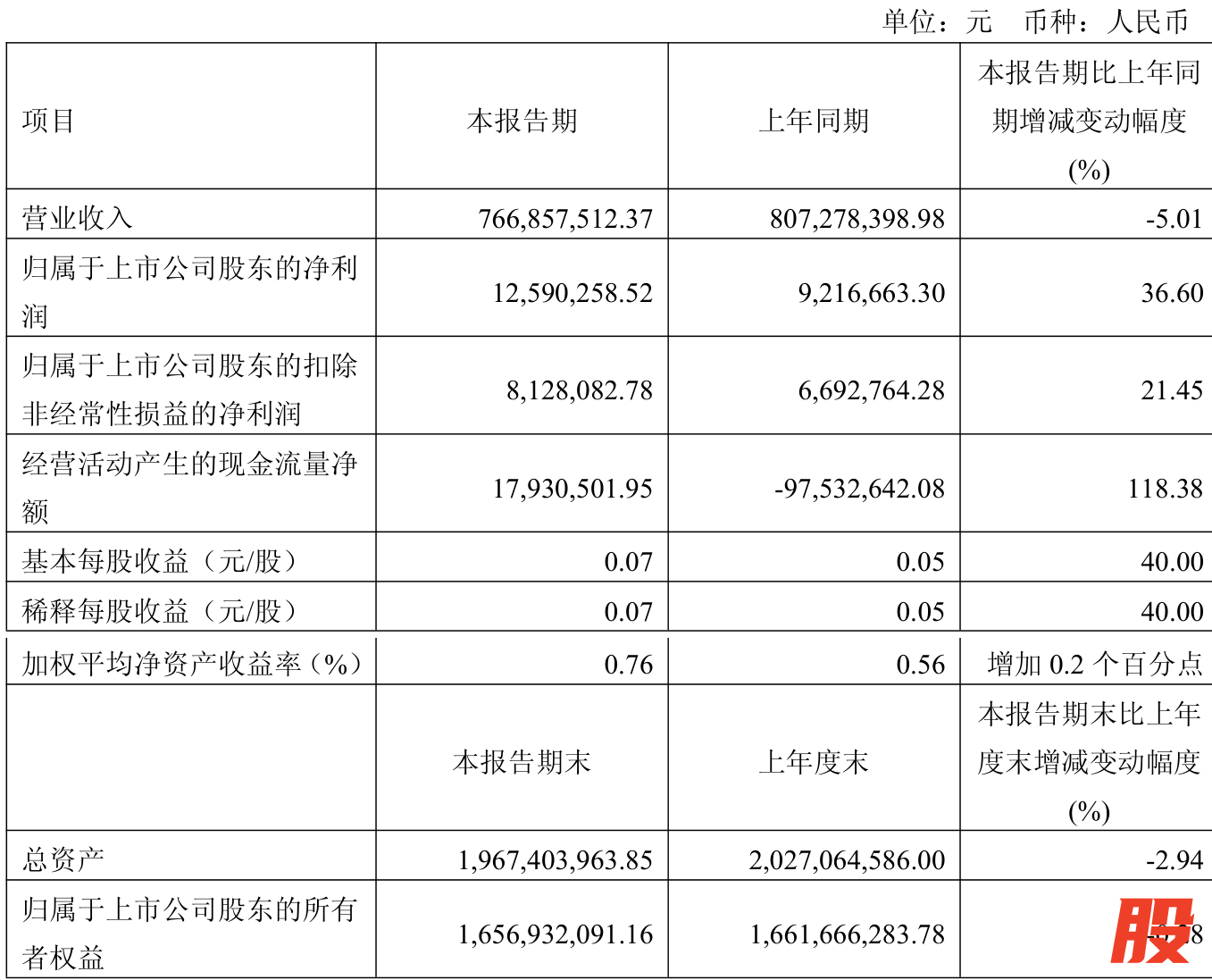 中证智能财讯和顺石油(603353)4月26日披露2025年第一季度报告。公司实现营业总收入7.67亿元,同比下降5.01%;归母净利润1259.03万元,同比增长36.60%;扣非净利润812.81万元,同比增长21.45%;经营活动产生的现金流量净额为1793.05万元,上年同期为-9753.26万元;报告期内,和顺石油基本每股收益为0.07元,加权平均净资产收益率为0.76%。