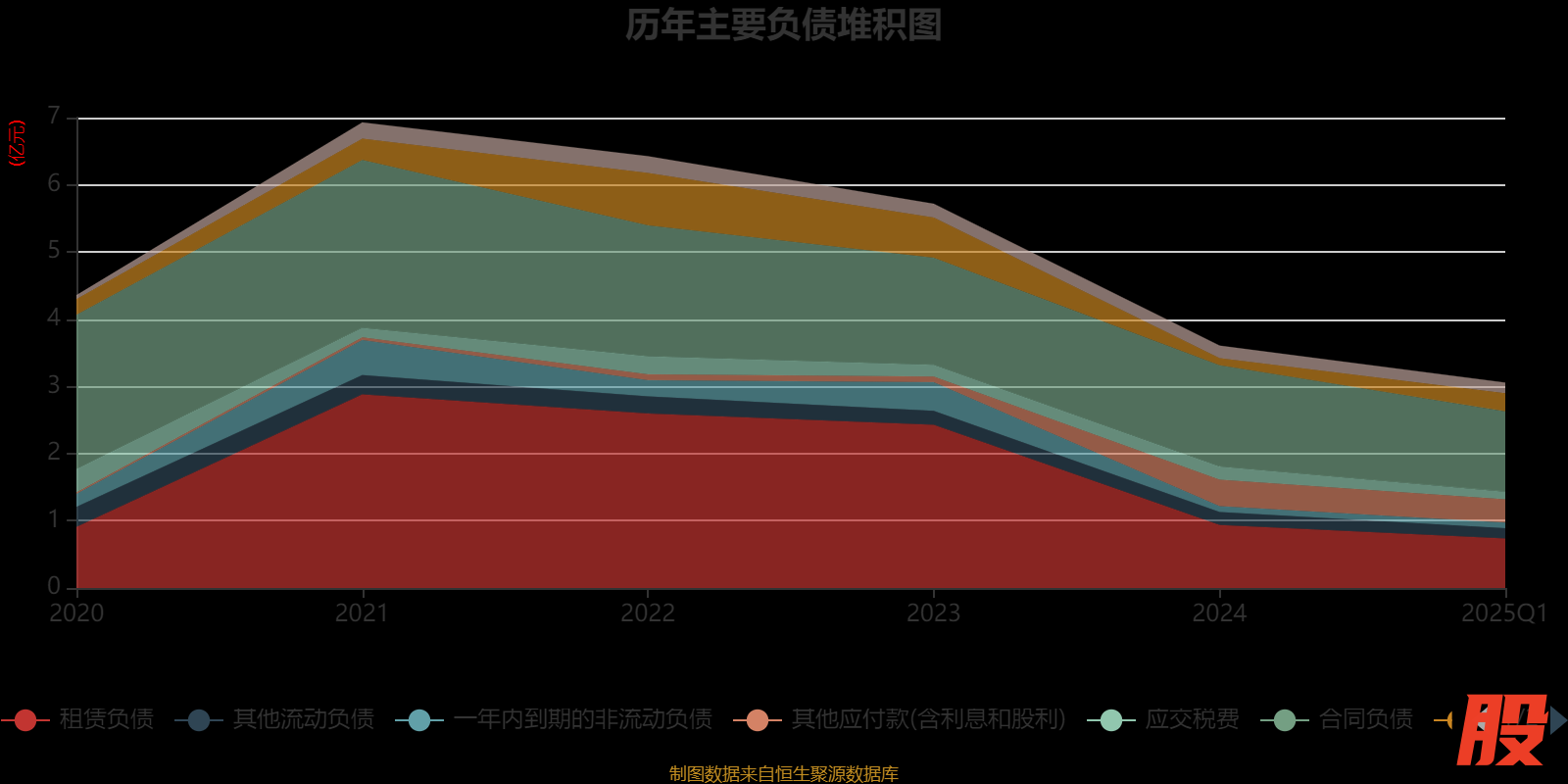 负债重大变化方面,截至2025年一季度末,公司合同负债较上年末减少20.57%,占公司总资产比重下降1.35个百分点;租赁负债较上年末减少21.46%,占公司总资产比重下降0.88个百分点;应付票据及应付账款较上年末增加152.43%,占公司总资产比重上升0.84个百分点;应交税费较上年末减少40.48%,占公司总资产比重下降0.37个百分点。