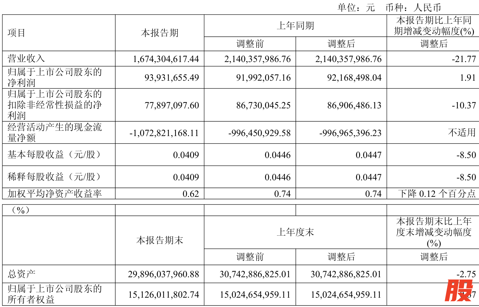 盈利能力方面, 2025年一季度公司加权平均净资产收益率为0.62%,同比下降0.12个百分点。公司2025年第一季度投入资本回报率为0.47%,较上年同期上升0.01个百分点。